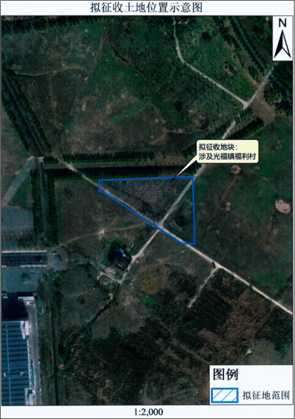 因公共利益需要,本次擬征收土地位于吳中區光福鎮福利村范圍內,擬征收土地面積為0.7474公頃。根據《中華人民共和國土地管理法》第四十五條的規定,本次征收土地目的為在土地利用總體規劃確定的城鎮建設用地范圍內,經省級以上人民政府批準由縣級以上地方人民政府組織實施的成片開發建設需要用地。擬征收土地位置詳見附圖。實際征收土地范圍以最終批準文件為準。