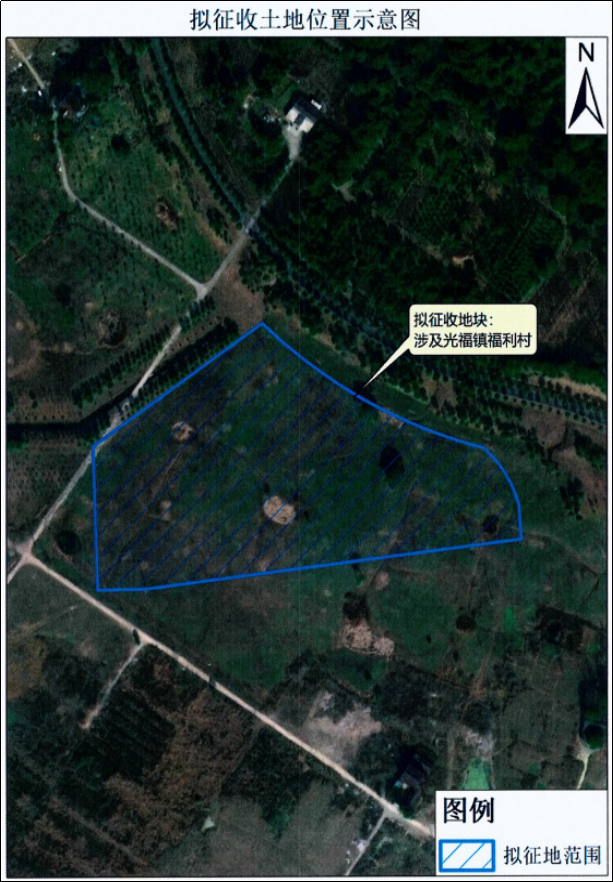 因公共利益需要,本次擬征收土地位于吳中區光福鎮福利村范圍內,擬征收土地面積為3.0601公頃。根據《中華人民共和國土地管理法》第四十五條的規定,本次征收土地目的為在土地利用總體規劃確定的城鎮建設用地范圍內,經省級以上人民政府批準由縣級以上地方人民政府組織實施的成片開發建設需要用地。擬征收土地位置詳見附圖。實際征收土地范圍以最終批準文件為準。